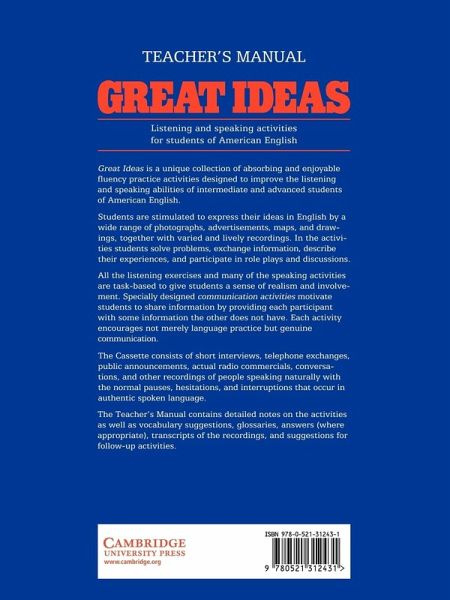 Great Ideas is a unique collection of absorbing and enjoyable fluency practice activities designed to improve the listening and speaking abilities of intermediate and advanced students of American English.