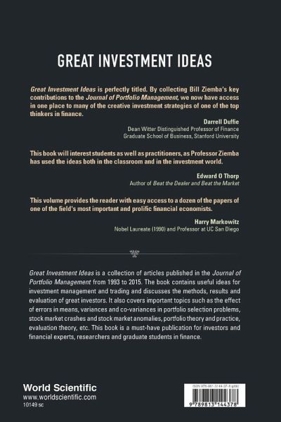 Great Investment Ideas is a collection of articles published in the Journal of Portfolio Management from 1993 to 2015. The book contains useful ideas for investment management and trading and discusses the methods, results and evaluation of great investors. It also covers important topics such as the effect of errors in means, variances and co-variances in portfolio selection problems, stock market crashes and stock market anomalies, portfolio theory and practice, evaluation theory, etc. This book is a must-have publication for investors and financial experts, researchers and graduate students in finance.