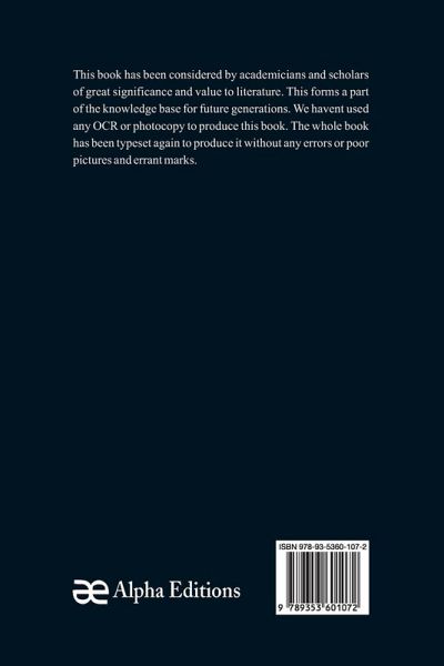 This book has been considered by academicians and scholars of great significance and value to literature. This forms a part of the knowledge base for future generations. We have represented this book in the same form as it was first published. Hence any marks seen are left intentionally to preserve its true nature.