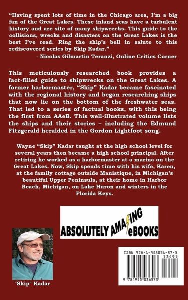 "Having spent lots of time in the Chicago area, I'm a big fan of the Great Lakes. These inland seas have a turbulent history and are site of many shipwrecks. This guide to the collisions, wrecks and disasters on the Great Lakes is the best I've read. Ring the ship's bell in salute to this rediscovered series by Skip Kadar."- Nicolas Gilmartin Teranzi, Online Critics CornerThis meticulously researched book provides a fact-filled guide to shipwrecks on the Great Lakes. A former harbormaster, "Skip" Kadar became fascinated with the regional history and began researching ships that now lie on the bottom of the freshwater seas. That led to a series of factual books, with this being the first from AAeB. This well-illustrated volume lists the ships and their stories - including the Edmund Fitzgerald heralded in the Gordon Lightfoot song.