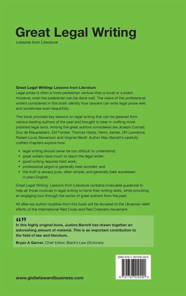 Legal prose is often a more pedestrian venture than a novel or a poem. However, even the pedestrian can be done well. The views of the professional writers considered in this book identify how lawyers can write legal prose well, and sometimes even beautifully. This book provides key lessons on legal writing that can be gleaned from various leading authors of the past and brought to bear in crafting more polished legal texts. Among the great authors considered are Joseph Conrad, Guy de Maupassant, E.M. Forster, Thomas Hardy, Henry James, D.H. Lawrence, Robert Louis Stevenson and Virginia Woolf. Central themes identified are: Legal writing should never be too difficult to understand; Great writers have much to teach the legal writer; Good writing requires hard work; Professional jargon is generally best avoided; and The truth is always pure, often simple, and generally best expressed in plain English. This book contains invaluable guidance to help all those involved in legal writing to hone their writing skills, while providing an engaging tour through the works of great authors from the past. All after-tax author royalties from this book will be donated to the Ukrainian relief efforts of the International Red Cross and Red Crescent movement.