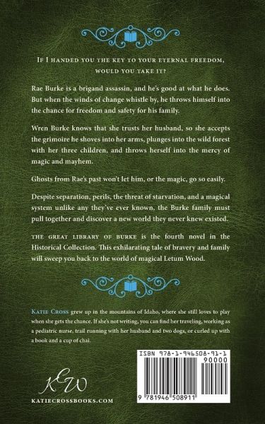 "If I handed you the key to your eternal freedom, would you take it?" Rae Burke is a brigand assassin, and he's good at what he does. But when the winds of change whistle by, he throws himself into the chance for freedom and safety for his family. Wren Burke knows that she trusts her husband, so she accepts the grimoire he shoves into her arms, plunges into the wild forest with her three children, and throws herself into the mercy of magic and mayhem. Ghosts from Rae's past won't let him, or the magic, go so easily. Despite separation, perils, the threat of starvation, and a magical system unlike any they've ever known, the Burke family must pull together and discover a new world they never knew existed. THE GREAT LIBRARY OF BURKE is the fourth novel in the Historical Collection. This exhilarating tale of bravery and family will sweep you back to the world of magical Letum Wood.