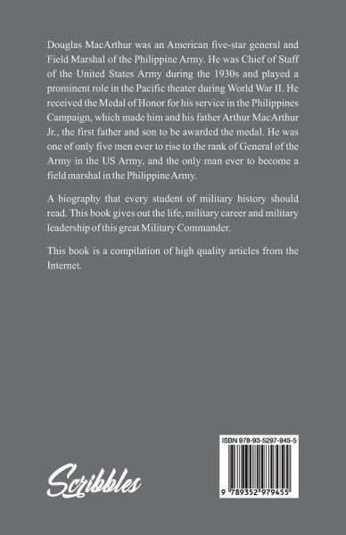 Douglas MacArthur was an American five-star general and Field Marshal of the Philippine Army. He was Chief of Staff of the United States Army during the 1930s and played a prominent role in the Pacific theater during World War II. He received the Medal of Honor for his service in the Philippines Campaign, which made him and his father Arthur MacArthur Jr., the first father and son to be awarded the medal. He was one of only five men ever to rise to the rank of General of the Army in the US Army, and the only man ever to become a field marshal in the Philippine Army. A biography that every student of military history should read. This book gives out the life, military career and military leadership of this great Military Commander. This book is a compilation of high quality articles from the Internet.