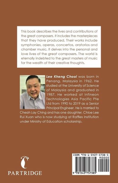 This book describes the lives and contributions of the great composers. It includes the masterpieces that they have produced. Their works include symphonies, operas, concertos, oratorios and chamber music. It delves into the personal and love lives of the great composers. The world is eternally indebted to the great masters of music for the wealth of their creative thoughts.