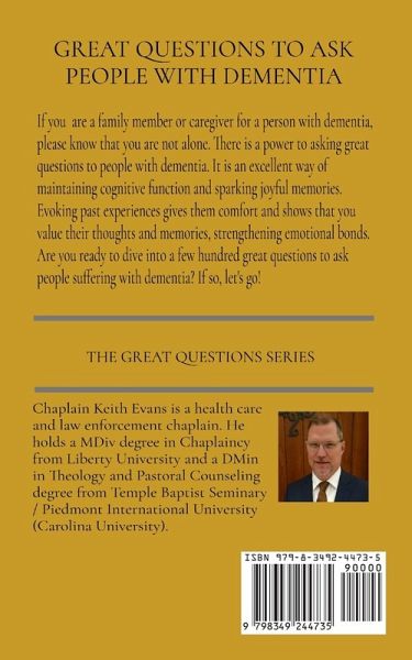 GREAT QUESTIONS TO ASK PEOPLE WITH DEMENTIA If you are a family member or caregiver for a person with dementia, please know that you are not alone. There is a power to asking great questions to people with dementia. It is an excellent way of maintaining cognitive function and sparking joyful memories. Evoking past experiences gives them comfort and shows that you value their thoughts and memories, strengthening emotional bonds. Are you ready to dive into a few hundred great questions to ask people suffering with dementia? If so, let's go!