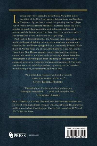 A unique resource with a new perspective on the U.S. Army in the Great Sioux War Lasting nearly two years, the Great Sioux War pitted almost one-third of the U.S. Army against Lakota Sioux and Northern Cheyennes. By the time it ended, this grueling war had played out on twenty-seven different battlefields scattered across five states, resulted in hundreds of casualties, cost millions of dollars, and transformed the landscape and the lives of survivors on both sides. It also entrenched a view of the army as largely inept. In this compelling sourcebook, Paul Hedren uses extensive documentation to demonstrate that the American army adapted quickly to the challenges of fighting this unconventional war and was more effectively led and better equipped than is customarily believed. While it lost at Powder River and at the Little Big Horn, it did not lose the Great Sioux War. In the first part of this volume, Hedren considers concepts of doctrine, training, culture, and matériel to aid understanding of the army's structure and disposition. In part two he dissects the twenty-eight Great Sioux War deployments in chronological order, including documentation of command structures, regiments, and companies employed. In the concluding section, the author addresses how an otherwise sound American army was defeated in two battles and nearly lost a third. The book also features seven helpful appendices, a glossary, and an oversized map showing forts, encampments, and battle sites. By expanding his purview to encompass all of the war's battles-along with troop movements, strategies, and tactics-Hedren offers an authoritative account of the conduct of U.S. forces in a campaign all too frequently misunderstood. Paul L. Hedren is a retired National Park Service superintendent residing in Omaha, Nebraska. He is the author of Fort Laramie and the Great Sioux War and, most recently, We Trailed the Sioux: Enlisted Men Speak on Custer, Crook, and the Great Sioux War.