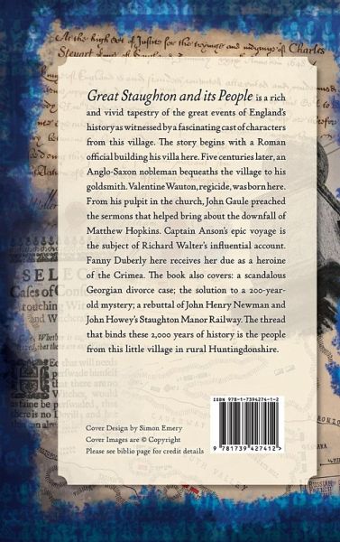 Great Staughton and its People is a rich and vivid tapestry of the great events of England's history as witnessed by a fascinating cast of characters from this village. The story begins with a Roman official building his villa here. Five centuries later, an Anglo-Saxon nobleman bequeaths the village to his goldsmith. Valentine Wauton, regicide, was born here. From his pulpit in the church, John Gaule preached the sermons that helped bring about the downfall of Matthew Hopkins. Captain Anson's epic voyage is the subject of Richard Walter's influential account. Fanny Duberly here receives her due as a heroine of the Crimea. The book also covers: a scandalous Georgian divorce case; the solution to a 200-year-old mystery; a rebuttal of John Henry Newman and John Howey's Staughton Manor Railway. The thread that binds these 2,000 years of history is the people from this little village in rural Huntingdonshire.