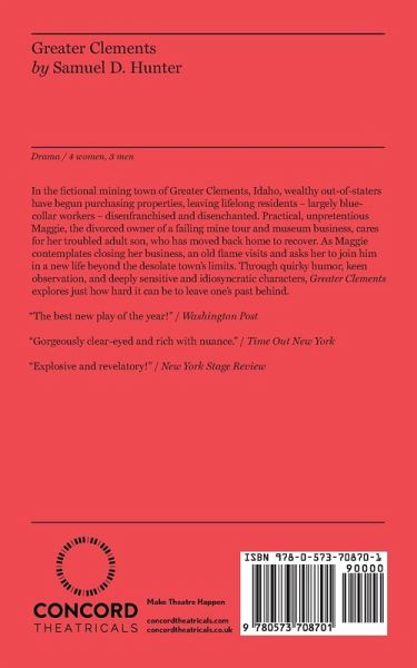 In the fictional mining town of Greater Clements, Idaho, wealthy out-of-staters have begun purchasing properties, leaving lifelong residents - largely blue-collar workers - disenfranchised and disenchanted. Practical, unpretentious Maggie, the divorced owner of a failing Mine Tour and Museum business, cares for her troubled adult son, who has moved back home to recover. As Maggie contemplates closing her business, an old flame visits and asks her to join him in a new life beyond the desolate town's limits. Through quirky humor, keen observation, and deeply sensitive and idiosyncratic characters, Greater Clements explores just how hard it can be to leave one's past behind.