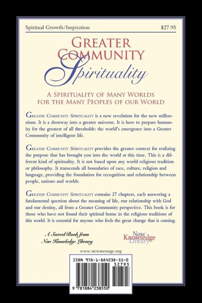A prophetic new understanding of God and human spirituality within a larger arena of intelligent life. Greater Community Spirituality is a spirituality that transcends all boundaries of race, culture, religion and language, providing the foundation for recognition and relationship between people, nations and worlds. GREATER COMMUNITY SPIRITUALITY is the New Message book of theology. It opens the way to a greater experience of God. This Message has never been presented in the world before and is not based upon any existing world religious tradition or philosophy. It is a new theology to prepare the human family for the great thresholds ahead. It is a doorway into a greater universe.