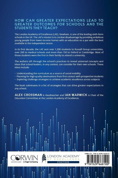 How can greater expectations lead to greater outcomes for schools and the students they teach? The London Academy of Excellence (LAE), Newham, is one of the leading sixth-form schools in the UK. The LAE's mission is to combat disadvantage by providing ambitious young people from lower-income homes with an education on a par with the best available in the independent sector. In its first decade, the LAE sent over 1,300 students to Russell Group universities, over 200 to medical schools and more than 150 to Oxford or Cambridge. Most of those students were the first in their family to attend a university. The authors sift through the school¿s practices to reveal universal concepts and ideas that school leaders, in any context, can consider for their own schools. These ideas include: * Understanding the curriculum as a source of social mobility * Planning for high quality destinations from first contact with prospective students * Exploring challenge strategies to achieve academic excellence across subjects The book culminates in a list of strategies that can drive greater expectations in any school. Alex Crossman is Headteacher and Ian Warwick is Chair of the Education Committee at the London Academy of Excellence.