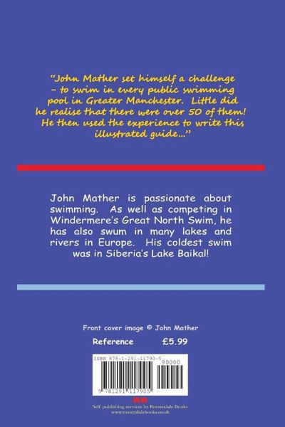"John Mather set himself a challenge - to swim in every public swimming pool in Greater Manchester. Little did he realise that there were over 50 of them! He then used the experience to write this illustrated guide..." PACKED FULL OF MAPS, DESCRIPTIONS OF POOLS, LOCAL HISTORY AND LOCAL PERSONALITIES - A MUST-HAVE GUIDE IF YOU LIKE SWIMMING, SUPERBLY ILLUSTRATED BY THE AUTHOR.