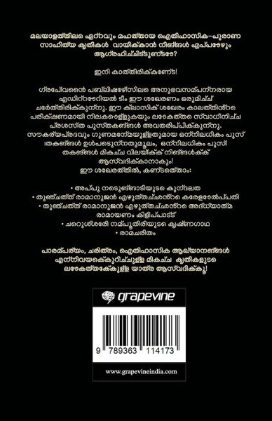 Have you always wanted to read the best in Greatest Malayalam Epic and Mythological Literature ever written?Look no further.The experienced editorial team at Grapevine Publishers has put together this curated bundle. This Classic Collection features books of acclaim which have stood the test of time and influenced the world. By putting multiple books in one convenient and quality collection, you can enjoy multiple books for one perfect price!In this collection, you will discover: ¿ Kundalatha by Appu Nedungadi (¿¿¿¿¿¿¿ (¿¿¿¿¿ ¿¿¿¿¿¿¿¿¿¿))¿ Keralolpathi by Thunchaththu Ramanujan Ezhuthachan (¿¿¿¿¿¿¿¿¿¿¿¿ (¿¿¿¿¿¿¿¿¿ ¿¿¿¿¿¿¿¿¿¿))¿ Adhyatma Ramayanam Kilippattu by Thunchaththu Ramanujan Ezhuthachan (¿¿¿¿¿¿¿¿¿¿¿¿¿¿¿¿¿ ¿¿¿¿¿¿¿¿¿¿¿¿ (¿¿¿¿¿¿¿¿¿ ¿¿¿¿¿¿¿¿¿¿))¿ Krishnagatha by Cherusseri Namboothiri (¿¿¿¿¿¿¿¿ (¿¿¿¿¿¿¿¿¿¿ ¿¿¿¿¿¿¿¿¿))¿ Ramacharitam (¿¿¿¿¿¿¿¿) Enjoy a delightful journey into a world of Works on Tradition, History and Legendary Narratives!