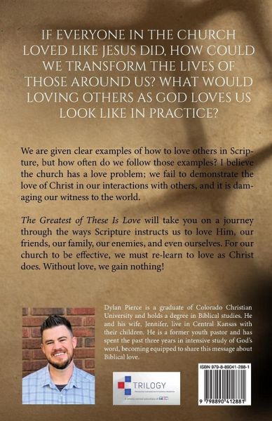 IF EVERYONE IN THE CHURCH LOVED LIKE JESUS DID, HOW COULD WE TRANSFORM THE LIVES OF THOSE AROUND US? WHAT WOULD LOVING OTHERS AS GOD LOVES US LOOK LIKE IN PRACTICE? We are given clear examples of how to love others in Scripture, but how often do we follow those examples? I believe the church has a love problem; we fail to demonstrate the love of Christ in our interactions with others, and it is damaging our witness to the world. The Greatest of These Is Love will take you on a journey through the ways Scripture instructs us to love Him, our friends, our family, our enemies, and even ourselves. For our church to be effective, we must re-learn to love as Christ does. Without love, we gain nothing!