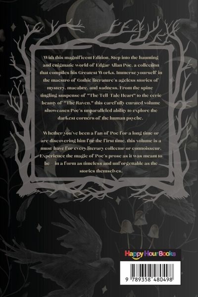With this magnificent Edition, Step into the haunting and enigmatic world of Edgar Allan Poe, a collection that compiles his Greatest Works. Immerse yourself in the maestro of Gothic literature's ageless stories of mystery, macabre, and sadness. From the spine-tingling suspense of "The Tell-Tale Heart" to the eerie beauty of "The Raven," this carefully curated volume showcases Poe's unparalleled ability to explore the darkest corners of the human psyche. Whether you've been a fan of Poe for a long time or are discovering him for the first time, this volume is a must-have for every literary collector or connoisseur. Experience the magic of Poe's prose as it was meant to be - in a form as timeless and unforgettable as the stories themselves.