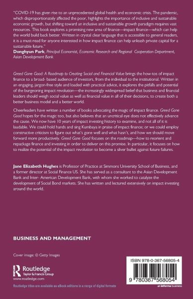 Greed Gone Good: A Roadmap to Creating Social and Financial Value brings the how-tos of impact finance to a broad- based audience of investors, from the individual to the institutional. Written in an engaging, jargon-free style and loaded with practical advice, it explores the pitfalls and potential of the burgeoning impact revolution-the increasingly widespread belief that business and financial leaders should weigh social value as well as financial value in all of their decisions, to create both a better business model and a better world. Cheerleaders have written a number of books advocating the magic of impact finance. Greed Gone Good hopes for the magic too, but also believes that an uncritical eye does not effectively advance the cause. We now have 10 years of impact investing history to examine, and not all of it is laudable. We could hold hands and sing Kumbaya in praise of impact finance; or we could employ constructive criticism to figure out what's gone well and what hasn't, and how we should move forward more productively. Greed Gone Good focuses on the roadmap-how to reorient and repackage finance and investing in order to deliver on this promise. In particular, it focuses on how to realize the potential of the impact revolution to become a silver bullet against future failures. Green Gone Good will have widespread appeal to investors ranging from individuals and family offices to the world's largest asset managers and investors.