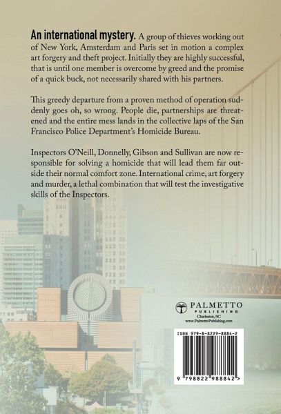An international mystery. A group of thieves working out of New York, Amsterdam and Paris set in motion a complex art forgery and theft project. Initially they are highly successful, that is until one member is overcome by greed and the promise of a quick buck, not necessarily shared with his partners. This greedy departure from a proven method of operation suddenly goes oh, so wrong. People die, partnerships are threatened and the entire mess lands in the collective laps of the San Francisco Police Department's Homicide Bureau. Inspectors O'Neill, Donnelly, Gibson and Sullivan are now responsible for solving a homicide that will lead them far outside their normal comfort zone. International crime, art forgery and murder, a lethal combination that will test the investigative skills of the Inspectors.