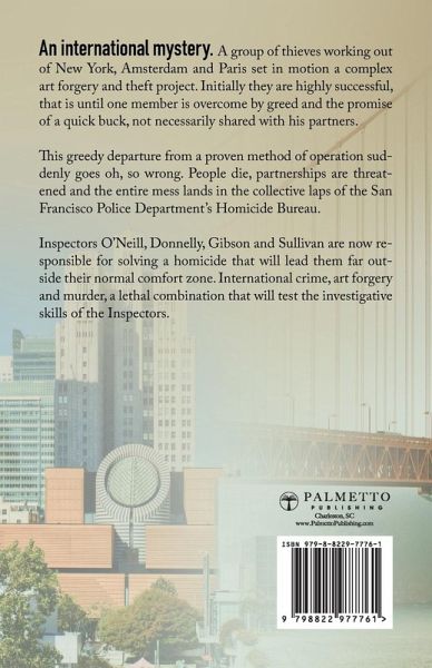 An international mystery. A group of thieves working out of New York, Amsterdam and Paris set in motion a complex art forgery and theft project. Initially they are highly successful, that is until one member is overcome by greed and the promise of a quick buck, not necessarily shared with his partners. This greedy departure from a proven method of operation suddenly goes oh, so wrong. People die, partnerships are threatened and the entire mess lands in the collective laps of the San Francisco Police Department's Homicide Bureau. Inspectors O'Neill, Donnelly, Gibson and Sullivan are now responsible for solving a homicide that will lead them far outside their normal comfort zone. International crime, art forgery and murder, a lethal combination that will test the investigative skills of the Inspectors.