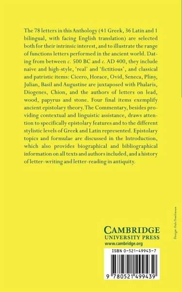 The seventy-eight letters in this Anthology are selected both for their intrinsic interest and to illustrate the range of functions letters performed in the ancient world. Dating from between c.500 BC and c.400 AD, they include naive and high-style, "real" and "fictitious," and classical and patristic items.