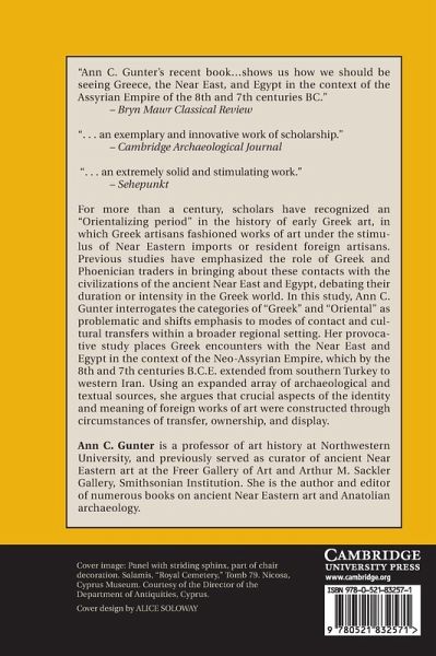 For over a century, scholars have recognized an 'orientalizing period' in the history of early Greek art, in which Greek artisans fashioned works of art under the stimulus of Near Eastern imports or resident foreign artisans. Previous studies have emphasized the role of Greek and Phoenician traders in bringing about these contacts with the civilizations of the ancient Near East and Egypt, debating their duration or intensity in the Greek world. In this study, Ann Gunter interrogates the categories of 'Greek' and 'Oriental' as problematic and shifts emphasis to modes of contact and cultural transfers within a broader regional setting. Her provocative study places Greek encounters with the Near East and Egypt in the context of the Neo-Assyrian Empire, which by the 8th and 7th centuries BCE extended from southern Turkey to western Iran. Using an expanded array of archaeological and textual sources, she argues that crucial aspects of the identity and meaning of foreign works of art were constructed through circumstances of transfer, ownership and display.