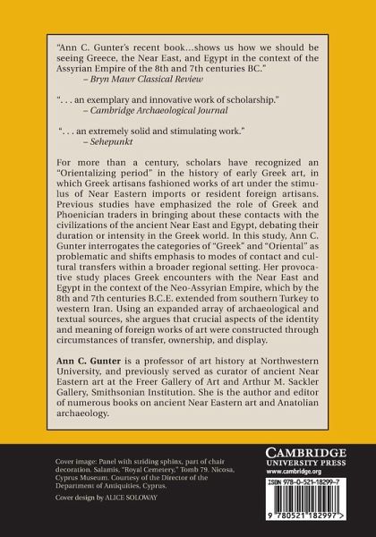 For over a century, scholars have recognized an 'orientalizing period' in the history of early Greek art, in which Greek artisans fashioned works of art under the stimulus of Near Eastern imports or resident foreign artisans. Previous studies have emphasized the role of Greek and Phoenician traders in bringing about these contacts with the civilizations of the ancient Near East and Egypt, debating their duration or intensity in the Greek world. In this study, Ann Gunter interrogates the categories of 'Greek' and 'Oriental' as problematic and shifts emphasis to modes of contact and cultural transfers within a broader regional setting. Her provocative study places Greek encounters with the Near East and Egypt in the context of the Neo-Assyrian Empire, which by the 8th and 7th centuries BCE extended from southern Turkey to western Iran. Using an expanded array of archaeological and textual sources, she argues that crucial aspects of the identity and meaning of foreign works of art were constructed through circumstances of transfer, ownership and display.