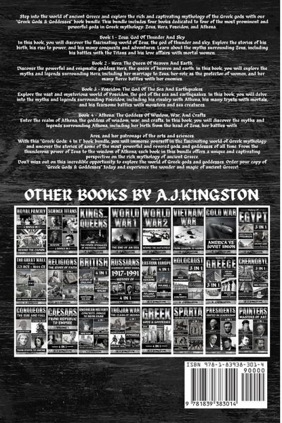 Step into the world of ancient Greece and explore the rich and captivating mythology of the Greek gods with our "Greek Gods & Goddesses" book bundle. This bundle includes four books dedicated to four of the most prominent and powerful gods in Greek mythology: Zeus, Hera, Poseidon, and Athena. Book 1 - Zeus: God Of Thunder And Sky In this book, you will discover the fascinating world of Zeus, the god of thunder and sky. Explore the stories of his birth, his rise to power, and his many conquests and adventures. Learn about the myths surrounding Zeus, including his battles with the Titans and his love affairs with mortal women. Book 2 - Hera: The Queen Of Heaven And Earth Discover the powerful and enigmatic goddess Hera, the queen of heaven and earth. In this book, you will explore the myths and legends surrounding Hera, including her marriage to Zeus, her role as the protector of women, and her many fierce battles with her enemies. Book 3 - Poseidon: The God Of The Sea And Earthquakes Explore the vast and mysterious world of Poseidon, the god of the sea and earthquakes. In this book, you will delve into the myths and legends surrounding Poseidon, including his rivalry with Athena, his many trysts with mortals, and his fearsome battles with monsters and sea creatures. Book 4 - Athena: The Goddess Of Wisdom, War, And Crafts Enter the realm of Athena, the goddess of wisdom, war, and crafts. In this book, you will discover the myths and legends surrounding Athena, including her birth from the head of Zeus, her battles with Ares, and her patronage of the arts and sciences. With this "Greek Gods: 4 In 1" book bundle, you will immerse yourself in the fascinating world of Greek mythology and uncover the stories of some of the most powerful and revered gods and goddesses of all time. From the thunderous power of Zeus to the wisdom of Athena, each book in this bundle offers a unique and captivating perspective on the rich mythology of ancient Greece. Don't miss out on this incredible opportunity to explore the world of Greek gods and goddesses. Order your copy of "Greek Gods & Goddesses" today and experience the wonder and magic of ancient Greece!