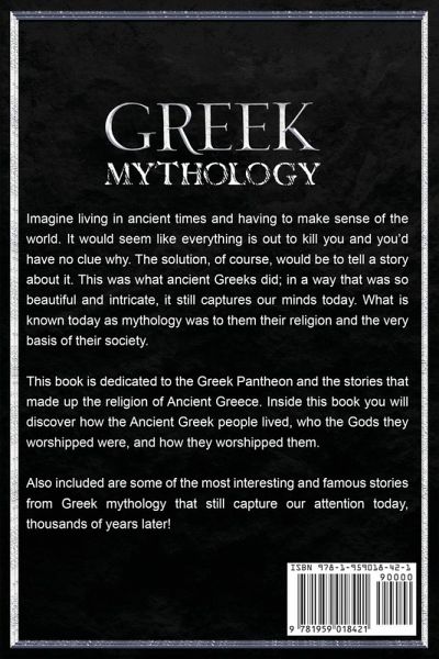 GREEK MYTHOLOGY Imagine living in ancient times and having to make sense of the world. It would seem like everything is out to kill you and you'd have no clue why. The solution, of course, would be to tell a story about it. This was what ancient Greeks did; in a way that was so beautiful and intricate, it still captures our minds today. What is known today as mythology was to them their religion and the very basis of their society. This book is dedicated to the Greek Pantheon and the stories that made up the religion of Ancient Greece. Inside this book you will discover how the Ancient Greek people lived, who the Gods they worshipped were, and how they worshipped them. Also included are some of the most interesting and famous stories from Greek mythology that still capture our attention today, thousands of years later! Ready to dive into the Greek Pantheon? Scroll up and click "Buy Now" to grab this book today!