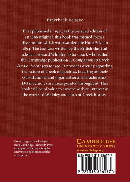 First published in 1913, as the reissued edition of an 1896 original, this book was formed from a dissertation which was awarded the Hare Prize in 1894. The text was written by the British classical scholar Leonard Whibley (1864-1941), who edited the Cambridge publication A Companion to Greek Studies from 1905 to 1931. It provides a study regarding the nature of Greek oligarchies, focusing on their constitutional and organisational characteristics. Detailed notes are incorporated throughout. This book will be of value to anyone with an interest in the works of Whibley and ancient Greek history.