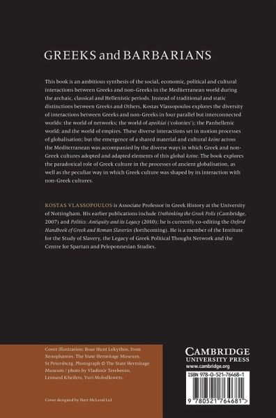 This book is an ambitious synthesis of the social, economic, political and cultural interactions between Greeks and non-Greeks in the Mediterranean world during the Archaic, Classical and Hellenistic periods. Instead of traditional and static distinctions between Greeks and Others, Professor Vlassopoulos explores the diversity of interactions between Greeks and non-Greeks in four parallel but interconnected worlds: the world of networks, the world of apoikiai ('colonies'), the Panhellenic world and the world of empires. These diverse interactions set into motion processes of globalisation; but the emergence of a shared material and cultural koine across the Mediterranean was accompanied by the diverse ways in which Greek and non-Greek cultures adopted and adapted elements of this global koine. The book explores the paradoxical role of Greek culture in the processes of ancient globalisation, as well as the peculiar way in which Greek culture was shaped by its interaction with non-Greek cultures.
