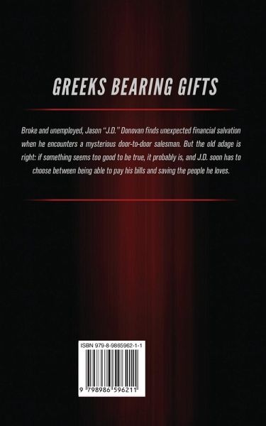 Broke and unemployed, Jason "J.D." Donovan finds unexpected financial salvation when he encounters a mysterious door-to-door salesman. But the old adage is right: if something seems too good to be true, it probably is, and J.D. soon has to choose between being able to pay his bills and saving the people he loves.