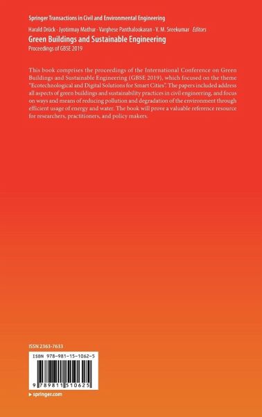 This book comprises the proceedings of the International Conference on Green Buildings and Sustainable Engineering (GBSE 2019), which focused on the theme "Ecotechnological and Digital Solutions for Smart Cities". The papers included address all aspects of green buildings and sustainability practices in civil engineering, and focus on ways and means of reducing pollution and degradation of the environment through efficient usage of energy and water. The book will prove a valuable reference resource for researchers, practitioners, and policy makers.