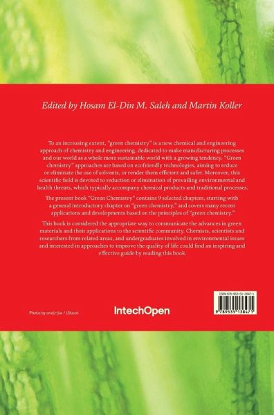 To an increasing extent, "green chemistry" is a new chemical and engineering approach of chemistry and engineering, dedicated to make manufacturing processes and our world as a whole more sustainable world with a growing tendency. "Green chemistry" approaches are based on ecofriendly technologies, aiming to reduce or eliminate the use of solvents, or render them efficient and safer. Moreover, this scientific field is devoted to reduction or elimination of prevailing environmental and health threats, which typically accompany chemical products and traditional processes. The present book "Green Chemistry" contains 9 selected chapters, starting with a general introductory chapter on "green chemistry," and covers many recent applications and developments based on the principles of "green chemistry." This book is considered the appropriate way to communicate the advances in green materials and their applications to the scientific community. Chemists, scientists and researchers from related areas, and undergraduates involved in environmental issues and interested in approaches to improve the quality of life could find an inspiring and effective guide by reading this book.