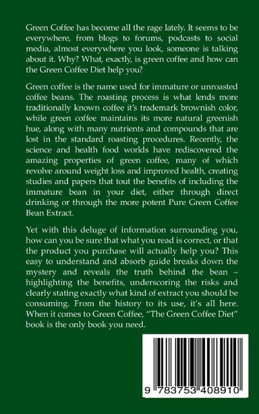 Green Coffee has become all the rage lately. It seems to be everywhere, from blogs to forums, podcasts to social media, almost everywhere you look, someone is talking about it. Why? What, exactly, is green coffee and how can the Green Coffee Diet help you?Green coffee is the name used for immature or unroasted coffee beans. The roasting process is what lends more traditionally known coffee it's trademark brownish color, while green coffee maintains its more natural greenish hue, along with many nutrients and compounds that are lost in the standard roasting procedures. Recently, the science and health food worlds have rediscovered the amazing properties of green coffee, many of which revolve around weight loss and improved health, creating studies and papers that tout the benefits of including the immature bean in your diet, either through direct drinking or through the more potent Pure Green Coffee Bean Extract.Yet with this deluge of information surrounding you, how can you be sure that what you read is correct, or that the product you purchase will actually help you? This easy to understand and absorb guide breaks down the mystery and reveals the truth behind the bean - highlighting the benefits, underscoring the risks and clearly stating exactly what kind of extract you should be consuming. From the history to its use, it's all here. When it comes to Green Coffee, "The Green Coffee Diet" book is the only book you need.