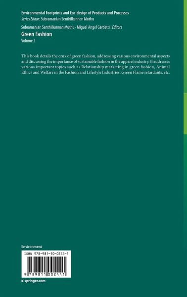 This book details the crux of green fashion, addressing various environmental aspects and discussing the importance of sustainable fashion in the apparel industry. It addresses various important topics such as Relationship marketing in green fashion, Animal Ethics and Welfare in the Fashion and Lifestyle Industries, Green Flame retardants, etc.