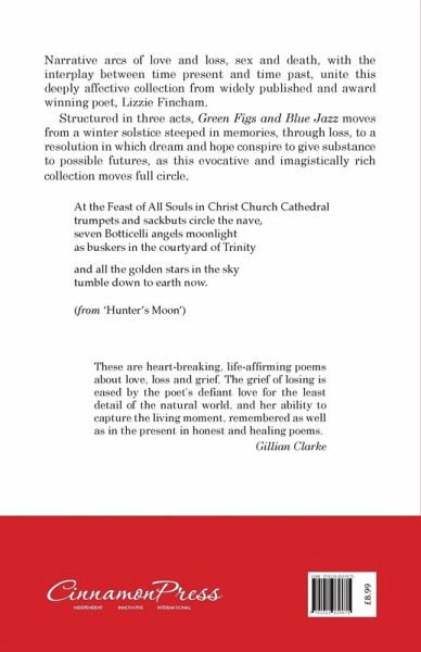 The narrative arcs of love and loss, sex and death, with the constant interplay between time present and time past, unite this deeply affective collection from widely published and award winning poet, Lizzie Fincham. Structured in three acts, Green Figs & Blue Jazz moves from a winter solstice, gathering memories of a relationship in which the signs of transience and mortality appear in retrospect, to a central act in which loss comes to the fore so that every place, each object, even the mud on a pair of boots becomes a stark meditation on what has gone, what might have been. Finally resolving in a final act in which memory, dreams and hope conspire to remake the past and give substance to possible futures, this evocative and imagistically rich collections moves full circle, ending in "advent" with the world still waiting. At the Feast of All Souls in Christ Church Cathedral trumpets and sackbuts circle the nave, seven Botticelli angels moonlight as buskers in the courtyard of Trinity and all the golden stars in the sky tumble down to earth now. (from "Hunter's Moon")