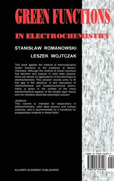 The book presents the method of thermodynamic Green Functions applied to the problems of electrochemistry. The basic theorems and their derivations are found at the didactic level which requires, however, a knowledge of the principles of quantum mechanics and statistical physics. The book is mainly based on the results of papers published during the last fifteen years by its authors and their coworkers from the Department of Theoretical Chemistry and the Department of Solid State Physics of the University ofL6di (poland) within the context of the results reported in literature. Although the Green Functions Method has become very popular in solid state physics, there are almost no applications of this technique to electrochemistry. The only papers where the Green Functions Method is applied to the molten salts and liquid mercury theory are the precursory works published by Professor S. G. Davison and his coworkers from the Waterloo University (Canada) in the early eighties. We hope that the present book can fill this gap in the electrochemical literature.