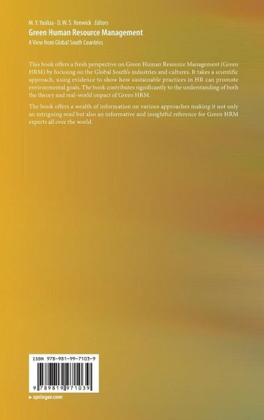 This book offers a fresh perspective on Green Human Resource Management (Green HRM) by focusing on the Global South's industries and cultures. It takes a scientific approach, using evidence to show how sustainable practices in HR can promote environmental goals. The book contributes significantly to the understanding of both the theory and real-world impact of Green HRM. The book offers a wealth of information on various approaches making it not only an intriguing read but also an informative and insightful reference for Green HRM experts all over the world.