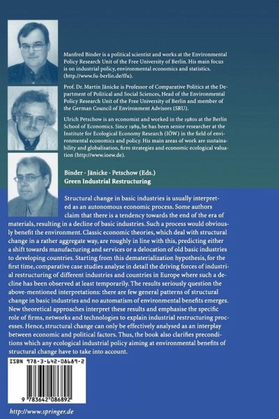 Dirty Industries in Decline: An Introduction to the Case Studies.- A. Theoretical Approaches.- Towards an End to the "Era of Materials"? Discussion of a Hypothesis.- Structural Change in Basic Industries and the Environment - Theoretical Foundations and Classic Economic Theories.- New Theoretical Perspectives on Industrial Restructuring and their Implications for (Green) Industrial Policy.- An Evolutionary Perspective on Structural Change and the Role of Technology.- Sectoral Network Structures as Determinants of Structural Change.- Industrial Complexes as the Centres of Gravity for Green Industrial Restructuring.- Multinational Enterprises and Industrial Restructuring: A Strategic Environmental Management Approach.- Opportunities for a Green Industrial Policy from an Evolutionary Technology Perspective.- Global Change and the Economic Charm of the Environment.- B. The Case Studies.- Chlorine Production in Germany.- Fertiliser Production in Austria.- Coal and Steel in Western Europe.- Aluminium Production in Germany.- Cement Production in Austria.- Cement Production in Denmark.- Oil Refineries in France.- Oil Refineries in the Netherlands.- Nuclear Energy in Germany.