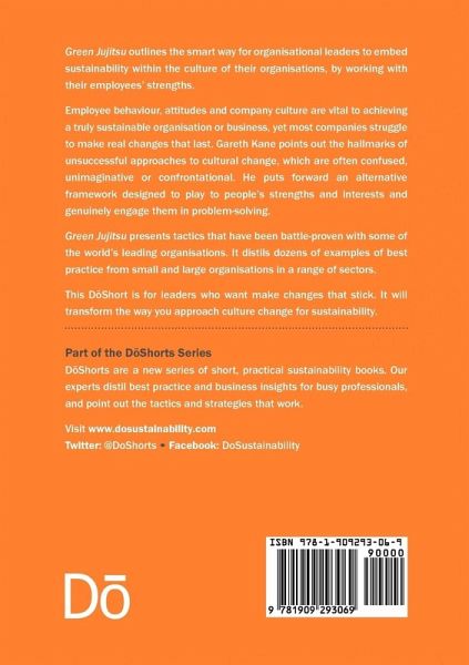 Business has recently woken up to the need to address environmental sustainability in a meaningful way. No longer is it sufficient to have an environmental policy or environmental management system - substantial changes to business practice are required. Culture change is widely regarded as the most vital and the most difficult element of this paradigm shift. The standard methods of "switch it off" stickers, awareness presentations and proclamations from the top have proved incapable of delivering the shift in attitudes required. Green Jujitsu is a completely different way of looking at culture change for environmental sustainability. Instead of trying to correct your colleagues' perceived "weaknesses", it focuses instead on playing to their strengths to get them truly interested and engaged. This principle is applied to the "elephant model" of culture change: providing clear guidance, inspiring people emotionally and altering the working environment. These techniques are illustrated with case studies from the author's own experience of facilitating culture change on the front line in some of the world's leading organizations.