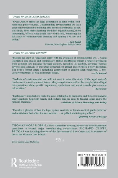 This book explores the interrelationship between the legal system and the environment, using key environmental law cases. It makes the point that the field that we identify as environmental law is only tangentially related to the scientific studies of the environment.