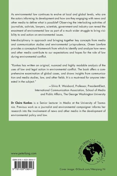 Interdisciplinary in approach and bringing together key concepts from media and communication studies and environmental jurisprudence, Green Lawfare provides a conceptual framework from which to identify and analyze how news and other media contribute to our expectations and hopes for the role of law during environmental conflict.