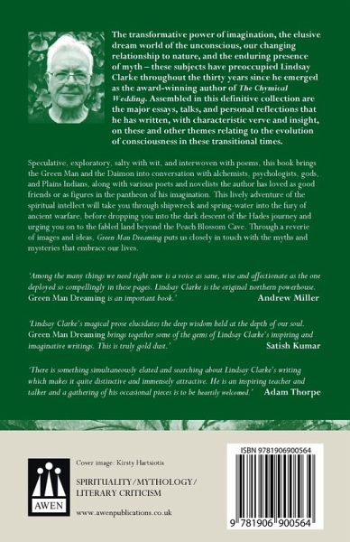 The transformative power of imagination, the elusive dream world of the unconscious, our changing relationship to nature, and the enduring presence of myth - these subjects have preoccupied Lindsay Clarke throughout the thirty years since he emerged as the award-winning author of The Chymical Wedding. Assembled in this definitive collection are the major essays, talks, and personal reflections that he has written, with characteristic verve and insight, on these and other themes relating to the evolution of consciousness in these transitional times. Speculative, exploratory, salty with wit, and interwoven with poems, this book brings the Green Man and the Daimon into conversation with alchemists, psychologists, gods, and Plains Indians, along with various poets and novelists the author has loved as good friends or as figures in the pantheon of his imagination. This lively adventure of the spiritual intellect will take you through shipwreck and spring-water into the fury of ancient warfare, before dropping you into the dark descent of the Hades journey and urging you on to the fabled land beyond the Peach Blossom Cave. Through a reverie of images and ideas, Green Man Dreaming puts us closely in touch with the myths and mysteries that embrace our lives.
