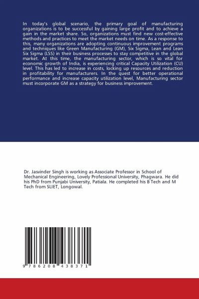 In today's global scenario, the primary goal of manufacturing organizations is to be successful by gaining large profit and to achieve a gain in the market share. So, organizations must find new cost-effective methods and practices to meet the market needs on time. As a response to this, many organizations are adopting continuous improvement programs and techniques like Green Manufacturing (GM), Six Sigma, Lean and Lean Six Sigma (LSS) in their business processes to stay competitive in the global market. At this time, the manufacturing sector, which is so vital for economic growth of India, is experiencing critical Capacity Utilization (CU) level. This has led to increase in costs, locking up resources and reduction in profitability for manufacturers. In the quest for better operational performance and increase capacity utilization level, Manufacturing sector must incorporate GM as a strategy for business improvement.