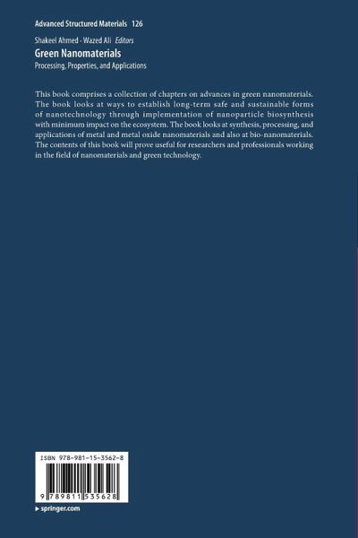 This book comprises a collection of chapters on advances in green nanomaterials. The book looks at ways to establish long-term safe and sustainable forms of nanotechnology through implementation of nanoparticle biosynthesis with minimum impact on the ecosystem. The book looks at synthesis, processing, and applications of metal and metal oxide nanomaterials and also at bio-nanomaterials. The contents of this book will prove useful for researchers and professionals working in the field of nanomaterials and green technology.