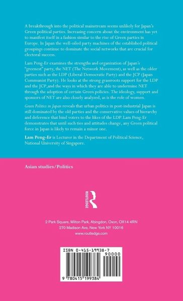 An important comparative study of Japanese politics that reveals that green issues have yet to displace the traditional urban politics of post-industrial Japan. This is unlike the rise of green parties and politics in Europe. Unlike Europe, it seems that political values in Japan are still informed by the conservative values of hierarchy and deference.