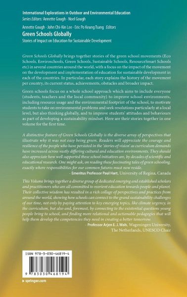 Chapter 1. Green school movements: An introduction.- Chapter 2. Seeking a green future through education.- Chapter 3. Towards a Generation of Sustainability Leaders: Eco-Schools as a global green schools movement for transformative education.- Chapter 4. The Enviroschools Programme in Aotearoa New Zealand: Action-orientated, culturally responsive, holistic learning.- Chapter 5. Moving Green to Mainstream: Schools as models of sustainability for their communities - The Australian Sustainable Schools Initiative (AuSSI).- Chapter 6. The Austrian ECOLOG-Schools Programme - Networking for Environmental and Sustainability Education.- Chapter 7. Ontario EcoSchools: A framework for environmental learning and action in k-12 schools.- Chapter 8. The Past, Present and Future of Mainland China's Green Schools.- Chapter 9. French Sustainable Development Schools (E3Ds) to promote awareness and commitment.- Chapter 10. Eco-Schools Movement in Germany in the Light of Educational Reforms.- Chapter 11. The Green School Award in Hong Kong: Development and impact in the school sector.- Chapter 12. Journey of Green Schools in India.- Chapter 13. Green Schools in Israel: Multiple rationales and multiple action plans.- Chapter 14. Eco-Schools Kenya: Practising Education for Green Economy and Sustainability.- Chapter 15. Green Schools in Mexico and Spain: Trends and critical perspective.- Chapter 16. Eco-Schools as Education for Sustainable Development in Rural South Africa.- Chapter 17. The Green school movement in Sweden - past, present and future.- Chapter 18. The development of Greenschools in Taiwan: Current situation, obstacles and prospects.- Chapter 19. Impact of the Eco-schools Program on "Education for Sustainable Development" in Turkey.- Chapter 20. The Ebb and Flow of Environmental and Sustainability Education in UK Schools.- Chapter 21. Green Schools in the United States.- Chapter 22. A Regional Approach to Eco-Schools in the Western Indian Ocean.- Chapter 23. Transformingeducation through green schools: Trials, tribulations and tensions.
