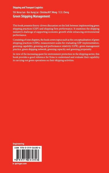 This book presents theory-driven discussion on the link between implementing green shipping practices (GSP) and shipping firm performance. It examines the shipping industry's challenge of supporting economic growth while enhancing environmental performance.