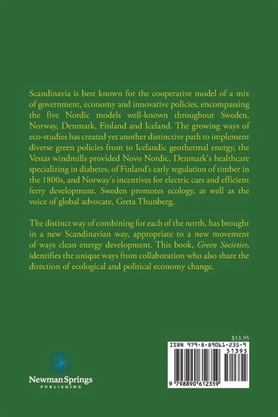 Scandinavia is best known for the cooperative model of a mix of government, economy and innovative policies, encompassing the five Nordic models well-known throughout the Sweden, Norway, Denmark and Iceland. The growing ways of eco-studies has created yet another distinctive path to implement diverse green policies from to Icelandic geothermal energy, the Vestas windmills provided Novo Nordic, Denmark's healthcare specializing in diabetes, and Norway's incentives for electric cars and efficient ferry development. Sweden promotes ecology, as well as the voice of global advocate, Greta Thunberg. The distinct way of combining for each of the north, has brought in a new Scandinavian way, appropriate to a new movement of ways clean energy development. This book, Green Societies, identifies the unique ways from collaboration who also share the direction of ecological and political economy change.
