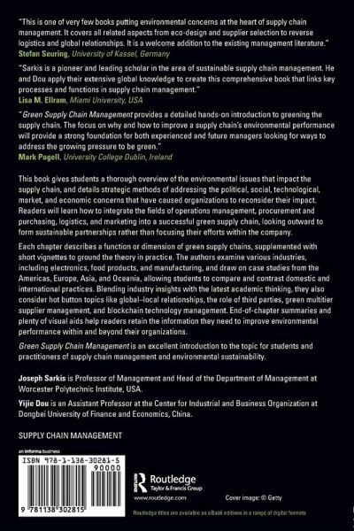 This book gives students a thorough overview of the environmental issues that impact the supply chain and details strategic methods of addressing the political, social, technological, market, and economic concerns that have caused organizations to reconsider their impact. Readers will learn how to integrate the fields of operations management, procurement and purchasing, logistics, and marketing into a successful green supply chain, looking outward to form sustainable partnerships rather than focusing their efforts within the company.