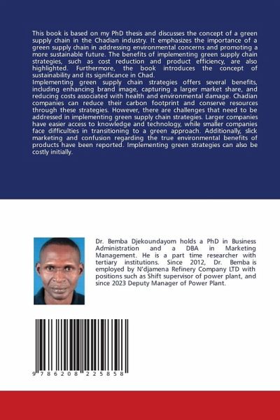 This book is based on my PhD thesis and discusses the concept of a green supply chain in the Chadian industry. It emphasizes the importance of a green supply chain in addressing environmental concerns and promoting a more sustainable future. The benefits of implementing green supply chain strategies, such as cost reduction and product efficiency, are also highlighted. Furthermore, the book introduces the concept of sustainability and its significance in Chad.Implementing green supply chain strategies offers several benefits, including enhancing brand image, capturing a larger market share, and reducing costs associated with health and environmental damage. Chadian companies can reduce their carbon footprint and conserve resources through these strategies. However, there are challenges that need to be addressed in implementing green supply chain strategies. Larger companies have easier access to knowledge and technology, while smaller companies face difficulties in transitioning to a green approach. Additionally, slick marketing and confusion regarding the true environmental benefits of products have been reported. Implementing green strategies can also be costly initially.