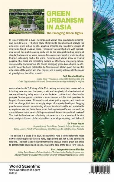 The world is facing an age of scarcity which will challenge all cities to reduce their resource footprint, especially carbon, improve biodiversity and at the same time continue to create economic opportunities and liveable places. This is green urbanism. Asian urban growth is leading the world in the rapidity of its change but how is it doing on green urbanism? This book finds emerging innovations and first signs of green urbanism in Asia and suggests they may be the guiding light for the rest of the world. The authors highlight seven archetypal cities exhibiting green urbanism: the renewable energy city, the bioregional carbon-neutral city, the distributed city, the biophilic city, the eco-efficient city, the place-based city and the sustainable transport city. The book is a must-read for all who are concerned with the future of our cities as it instills hope that a greener urban future is possible.